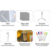 Easy to Use! Simply write or draw your messages and designs. Power it via USB for a glowing effect, or use it without illumination. Set it up effortlessly with the included stand, and when you're done, wipe it clean with a cloth for endless creativity!